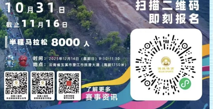 温馨提示:微信搜索公众号【昆明本地宝】,关注后在对话框回复【抚仙湖马拉松】可获2025年玉溪抚仙湖半程马拉松报名入口/时间、官网网址、中签公布查询入口/时间、竞赛时间/地点、志愿者招募等指南;
